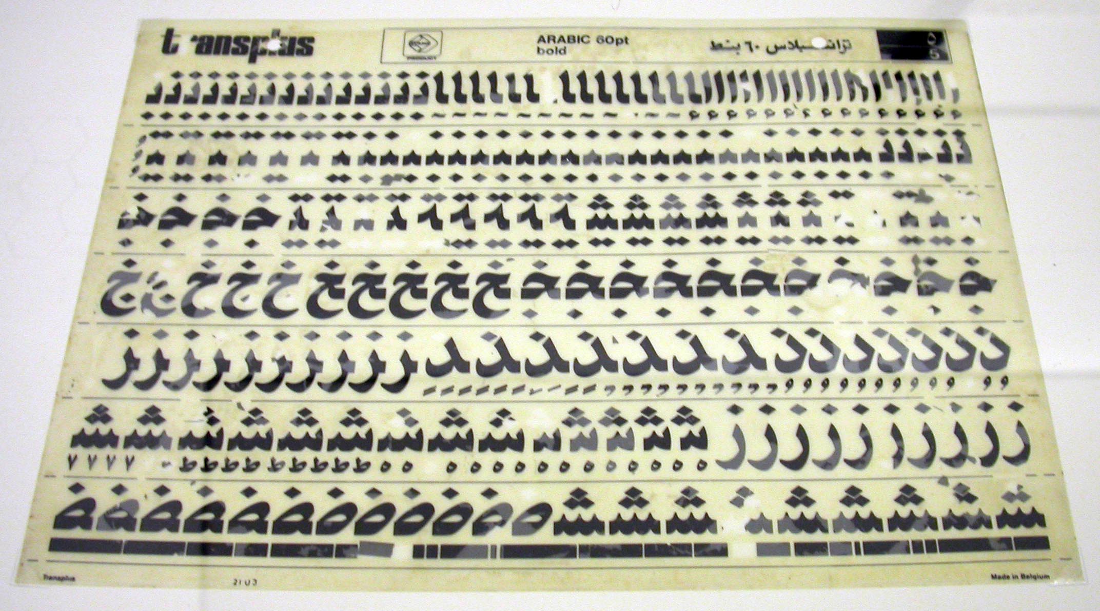 Arabic Letraset lettering from Nasreen’s studio memorabilia Ph Guy Mannes-Abbott