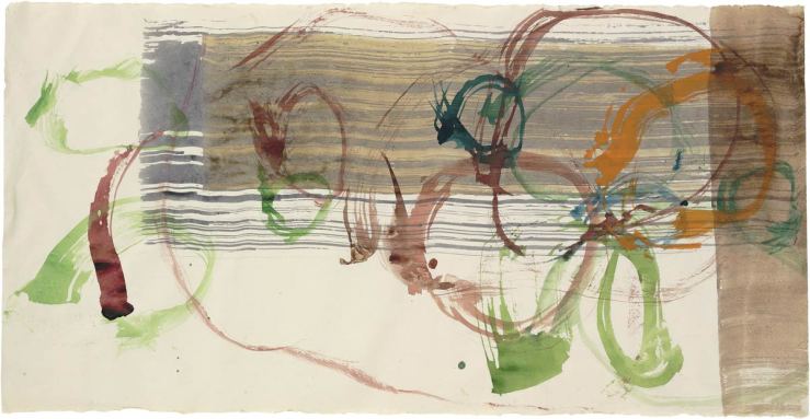 This complete show of John Cage’s paintings and drawings is one that you need to go see, be with in real time and place. It’s not only that it doesn’t reproduce well [despite there being a very good catalogue with excellent reproductions newly photographed in it here updated link 2020] or that I’ve badly scanned one of my favourite delicate drawings done -in place of meditation- with more than one pencil around stones that were special to Cage [the allusion is to the famous dry stone garden at Ryoan-ji, Kyoto] but that until you’ve journeyed to stand before them, share their space you haven’t actually seen them.