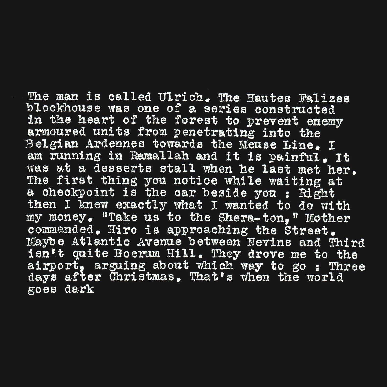 It will last for 11 tracks. Through Tripoli, Brixton, Ramallah. Sofia, The Metaverse. Ardennes forest. A garden.