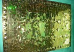 This welcoming tent is actually difficult to climb out from under, but once free I entered the building, which is reclad in that green of Islamic symbolism everywhere, as well as of the recent abortive uprising in Iran. Inside is a beautifully woven ‘turban’ of wheat grass, a beaded shade over a neon bulb and a wall mirror that they’ve shown before, but which is suddenly green here -of course. In part, it’s a visual art reference to that great mirror-maker Monir Farmanfarmaian but it carries their most mischievously ambiguous ‘slogan’ here; RESIST RESISTING GOD.