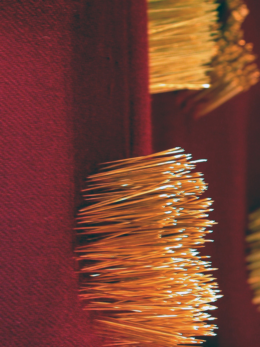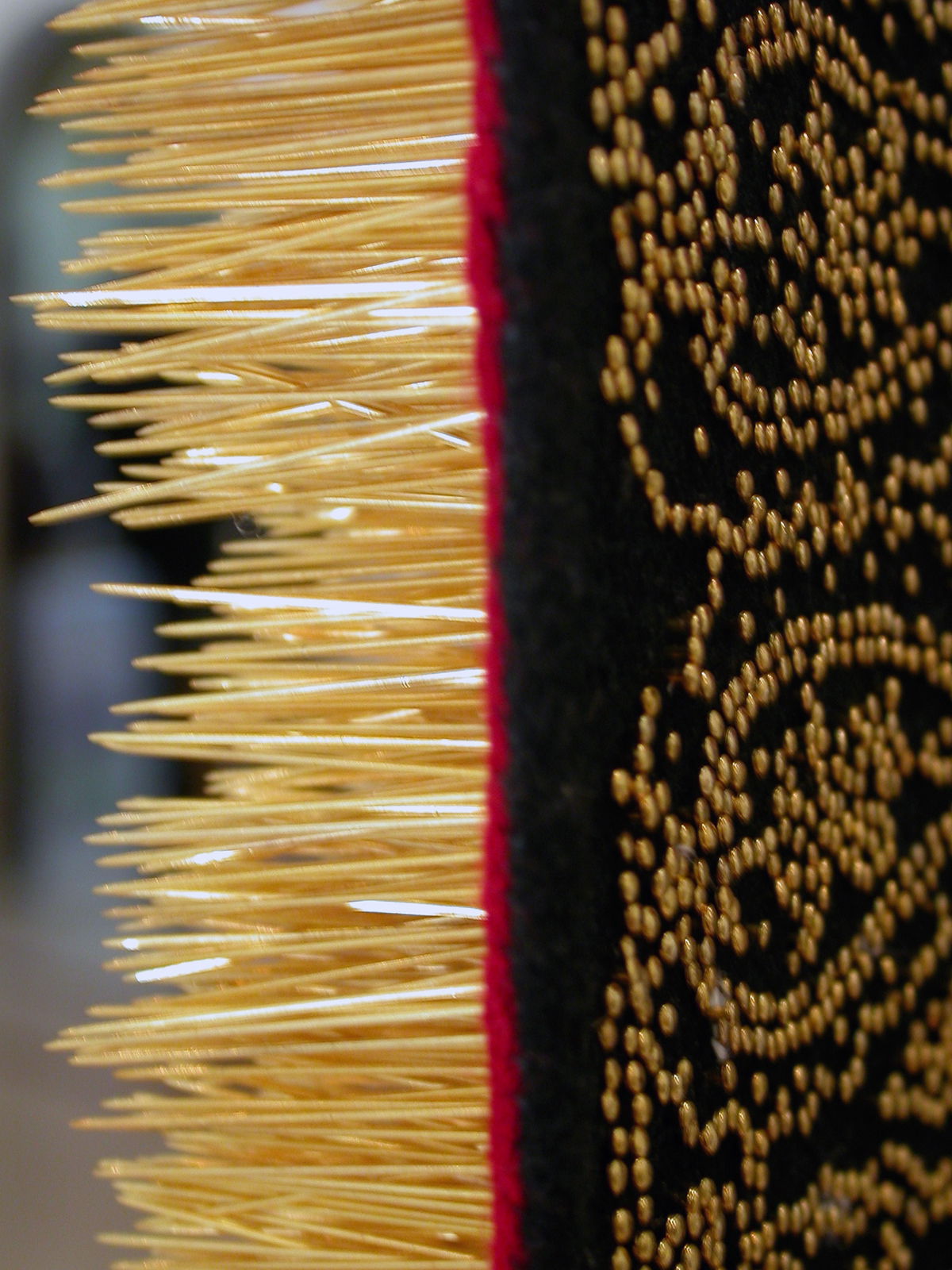 ak Yes, they are steel pins and it was long process to do the gold plating on these pins. We don’t have machines so the gold plating is all done by hand. In that process they have to tie every pin separately, so twelve people were working on the gold plating and they were working day and night for me. Just the plating, because time was short and so everyday they were working like that…