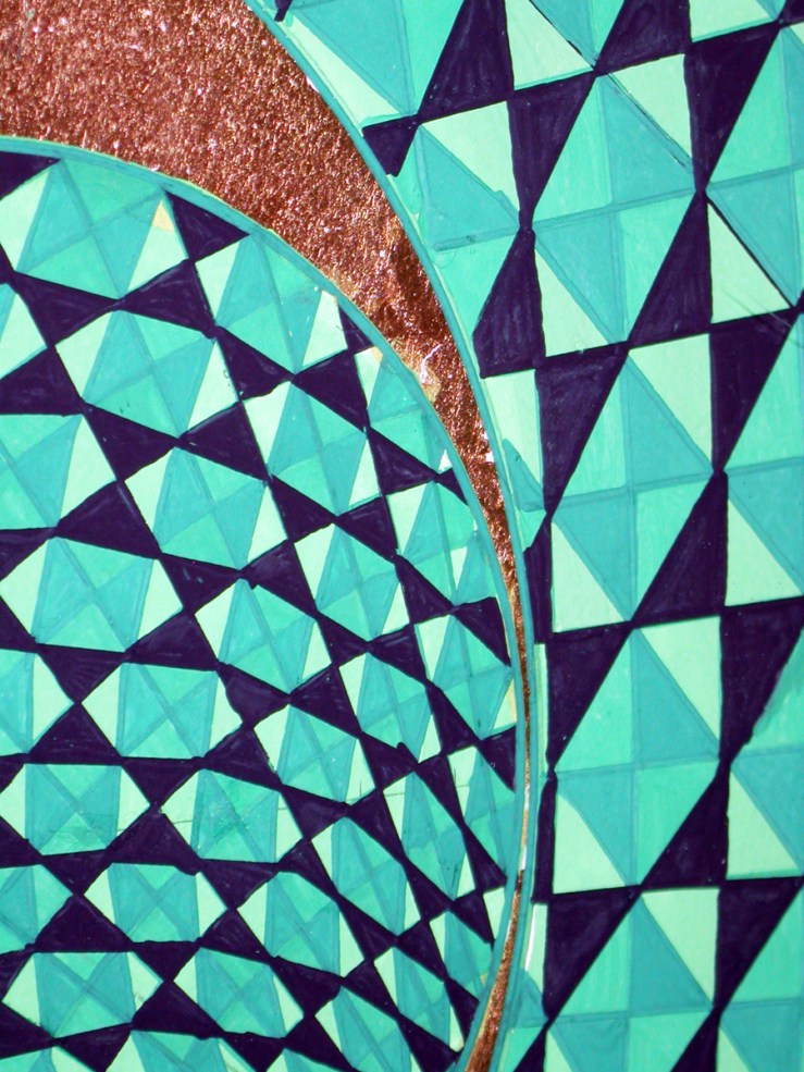 ak Yes, when he was 6 months old, he always sit next to me when I work. When he was 12 months old I took him to the exhibition to London. He saw in the gallery like this, and he recognise that these are my paintings, that’s amazing. I was like! -because he saw at home that these are the same! He comes and talks about my work and he gives comments; ‘ok this green is nice, what are you thinking about the background, why circle, why this pattern you are making’. So he always asks questions.