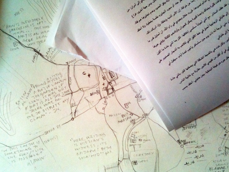 ![in ramallah, running pencil map and adania's text [Ph. Guy Mannes-Abbott]](https://notesfromafruitstore.net/wp-content/uploads/2011/07/in-rammall-running-pencil-map-and-adanias-text.jpg?w=739)