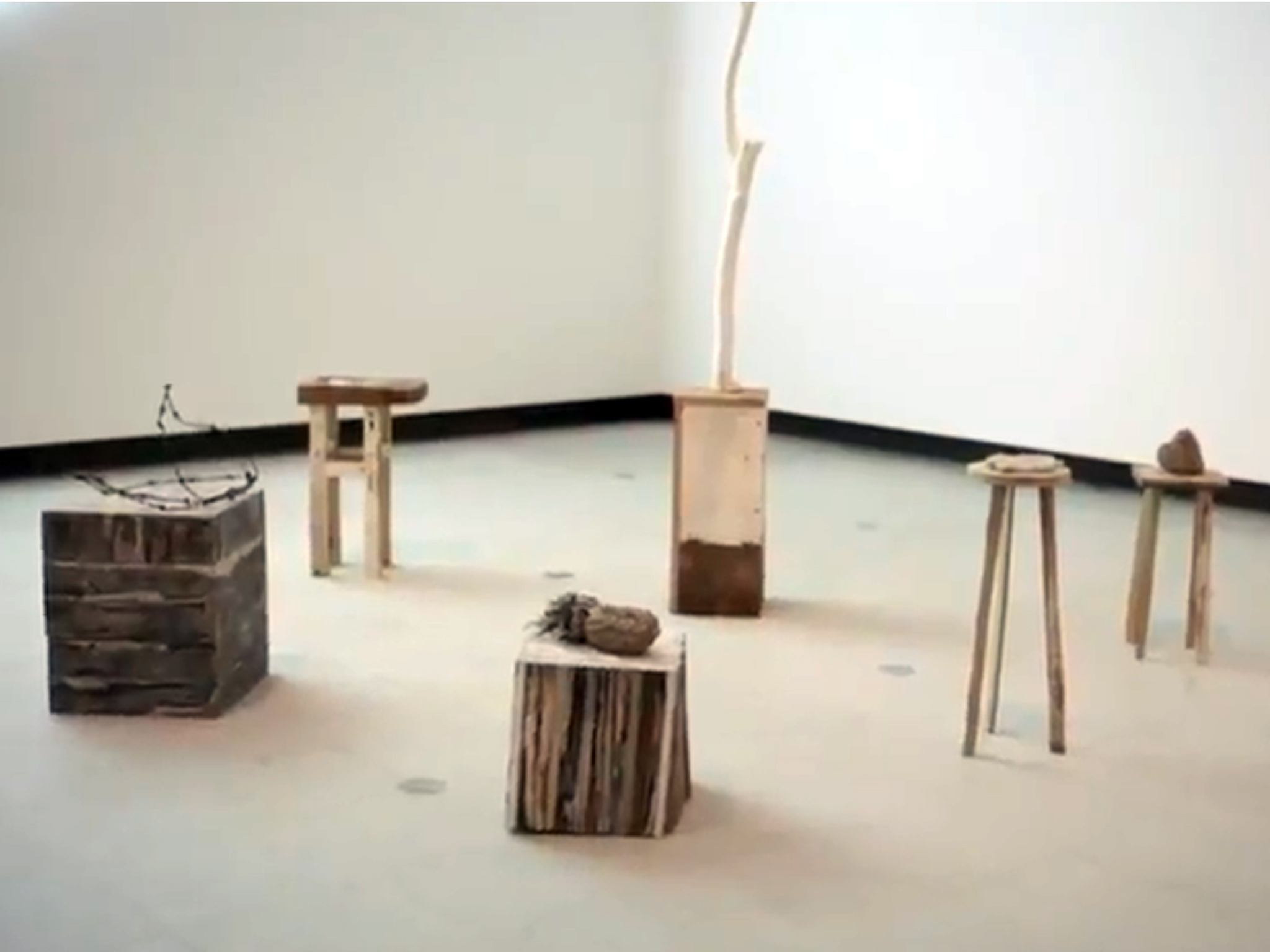 At last here is something. The first work has the inventiveness of need; someone in some room making something out of nothing and making it well. Here in the last room a trace of that spirit returns. Here are some sculptural pieces made from nicely prepared ‘rough’ timber with little additions to them. These are not world changing but they’re something. Something after a vast amount of nearly nothing. Something from nothing.
