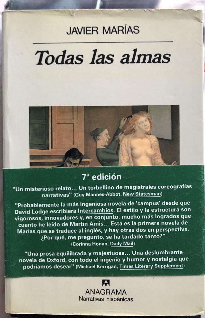 So, I have been wondering why I had not turned back to Marias in recent years, or read his post-Your Face work. Why I have not in fact re-read him? I’m about to discover the answer no doubt…! Btw, I tweeted an image (below) of the 7th edition in Spanish of All Souls/Todas las almas which reproduces a line of my review of it on the cover-slip because of a small personal resonance. Marias died too young at 70, as my mother did at 74. Too young as in; would-have-made-productive-reflective-happy-use-of-years-‘missed’-young. My mama was good at many things but not at paying visits; on a rare one of those in the mid-Nineties, we were in the old Grant & Cutler store and the new paperback of the Marias was on display. I clocked it and was quietly gratified to see it or my words translated even in this trivial way, given the currency of gift in words/books. I would have left it at that, but mama insisted that I should ‘always keep these things’ and bought it for me and thus made an indelible association in my mind with Marias thereafter… This rehearses the spirit and magic within, behind and beyond the words, pages and books of it all doesn’t it?