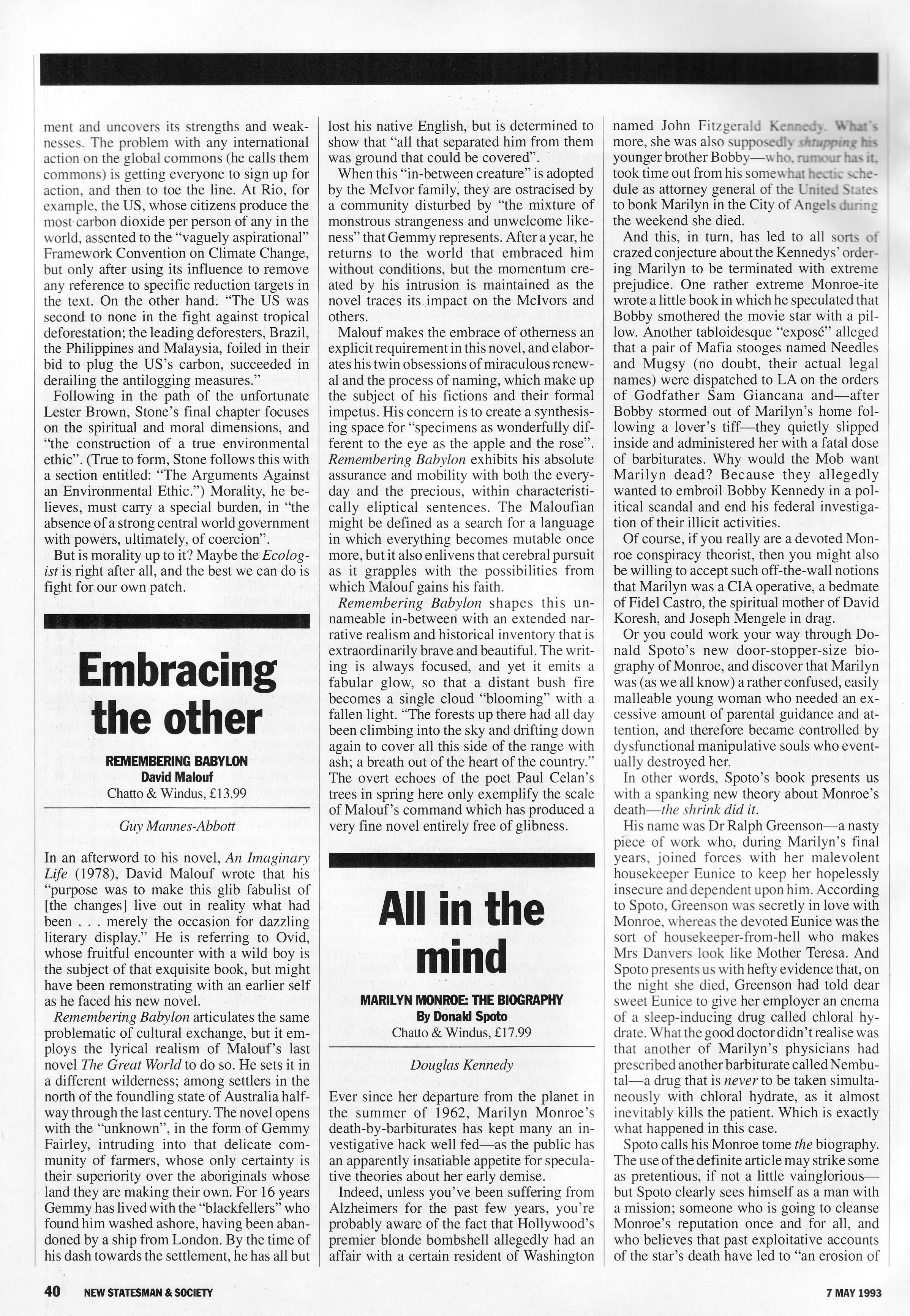 Remembering Babylon shapes this unnameable in-between with an extended narrative realism and historical inventory that is extraordinarily brave and beautiful. The writing is always focused , and yet it emits a tabular glow, so that a distant bush fire becomes a single cloud “blooming” with a fallen light. “The forests up there had all day been climbing into the sky and drifting down again to cover all this side of the range with ash; a breath out of the heart of the country.” The overt echoes of the poet Paul Celan’s trees in spring here only exemplify the scale of Malouf’s command which has produced a very fine novel entirely free of glibness.”